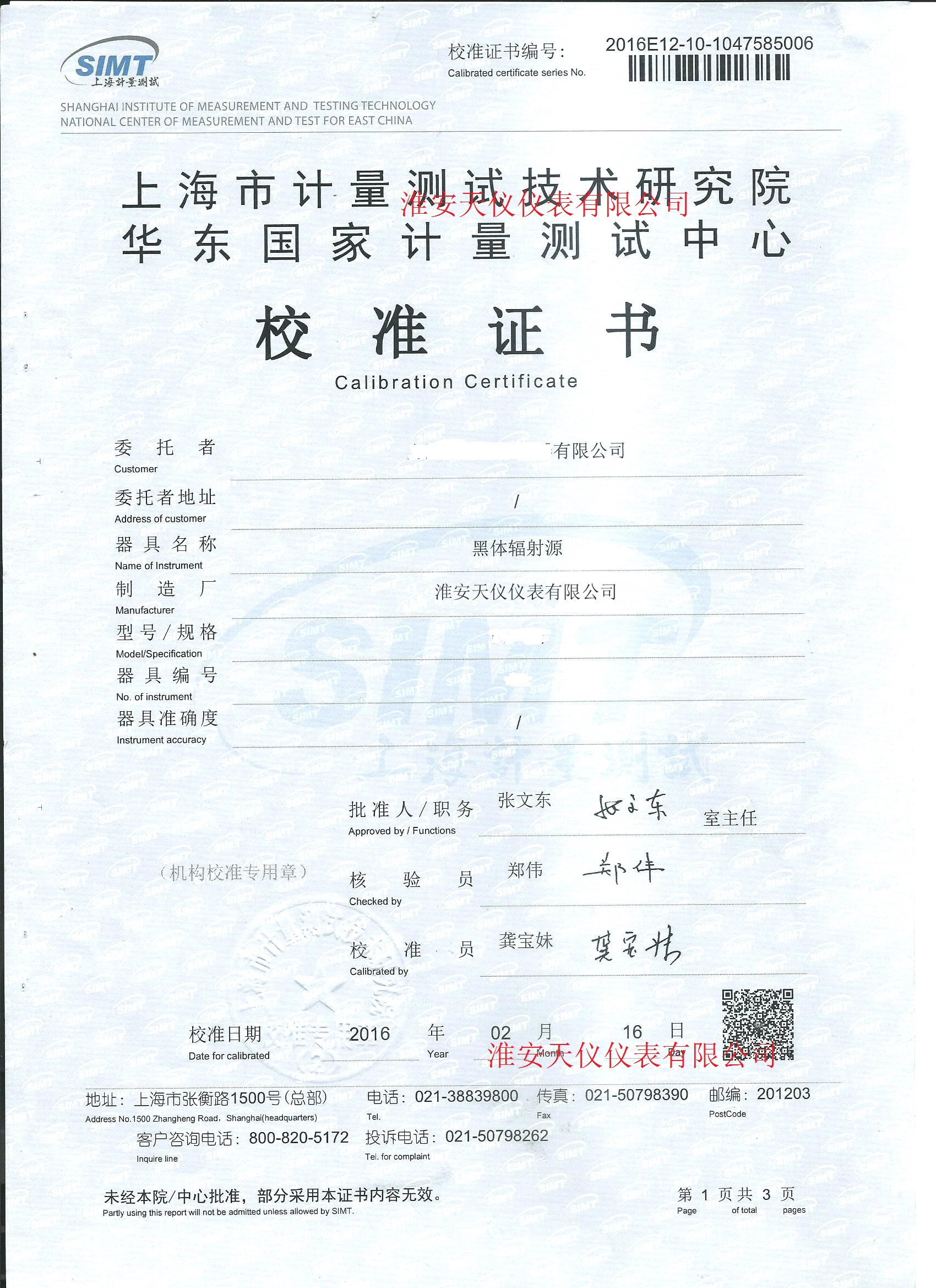 黑體爐校準(zhǔn)證書