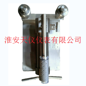 至適當(dāng)位置(中間位置)。打開穩(wěn)壓閥、使用微調(diào)調(diào)至檢定點(diǎn),逐點(diǎn)檢測至滿量程。校驗(yàn)完畢,將手搖柄順時針旋轉(zhuǎn)加壓至15MPa左右,如需更大壓力可關(guān)閉穩(wěn)壓閥,用微調(diào)調(diào)至所需壓力。檢驗(yàn)完畢打開疏空閥和穩(wěn)壓閥使壓力歸零。